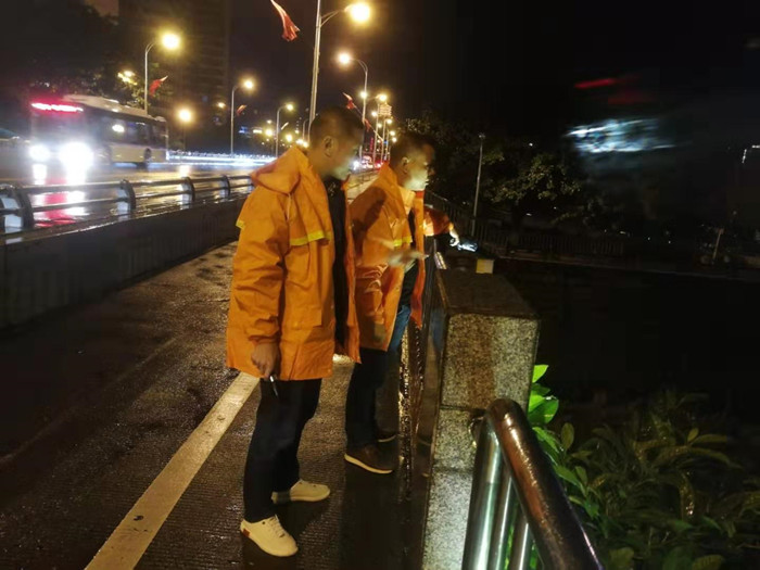持續(xù)強(qiáng)降雨造成綿江路鐵路橋下穿道積水嚴(yán)重,車輛通行困難。汛情緊急,防汛責(zé)任重于泰山,路橋公司緊急啟動防汛搶險(xiǎn)應(yīng)急預(yù)案,高效有序的開展防汛救災(zāi)相關(guān)工作:一是由公司副總經(jīng)理王智勇趕赴綿江路現(xiàn)場組織搶險(xiǎn),視察圣水寺抽水泵房運(yùn)作情況,通過前方斷流,抽水房不間斷的抽水,于13日上午11點(diǎn)26分恢復(fù)了鐵路下穿道通行;二是各路段加強(qiáng)公路、橋隧險(xiǎn)情巡查,以清障保暢為首要任務(wù),及時在隱患路段設(shè)置警示標(biāo)志,疏通阻塞泄水孔堆積物,清除倒伏樹木,消除行車安全隱患;三是在橋梁經(jīng)常性檢查的基礎(chǔ)上,加強(qiáng)國省干線橋梁和城區(qū)橋梁巡查,嚴(yán)格水位監(jiān)控及安全管理,及時啟動橋梁應(yīng)急預(yù)案,儲備攔水沙袋,所有值守人員就位,隨時做好橋梁管控、值守準(zhǔn)備工作。