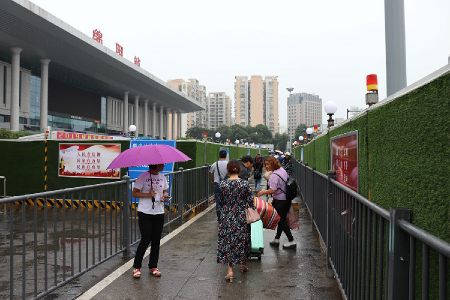 為了更好解決綿陽火車客站出口人流與車輛沖突問題,由于項目地處火車客站,為減少對來往旅客的影響,確保車站周圍交通組織管理有序,恒通建工前期與火車客站、機場、公交、公安、交警、市政、照明等相關單位積極協(xié)調,并在荷花北街往火車客站廣場路口、火車客站出站口醒目位置設置施工公告牌、交通警示及交通導向牌,將公交站臺應急通道用臨時欄桿設置人行專用通道、出租車及私家車專用通道,為項目順利推進做好保障。
