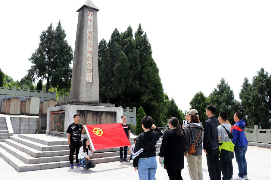 郁郁蒼蒼飛龍山,坎坎坷坷長征路。在紀(jì)念廣場上,團(tuán)員青年認(rèn)真了解了革命先烈英勇無畏的事跡,據(jù)歷史記載,紅軍長征時期,紅12師34團(tuán)在飛龍山駐扎、戰(zhàn)斗和生活19天,遺留下蘇維埃舊址、戰(zhàn)壕等紅色歷史遺跡。在紅軍長征紀(jì)念碑前,團(tuán)員青年向革命先烈敬獻(xiàn)菊花,默哀致敬,表達(dá)對先烈的緬懷之情。在團(tuán)支部書記李越的帶領(lǐng)下,全體團(tuán)員青年重溫了入團(tuán)誓詞,銘記時代青年的責(zé)任和使命。隨后,跟隨講解員的腳步,大家重走長征路,參觀了飛龍洞、紅軍戰(zhàn)壕、跑馬場等景點(diǎn),探尋當(dāng)年紅軍留下的遺跡,追尋紅色記憶。