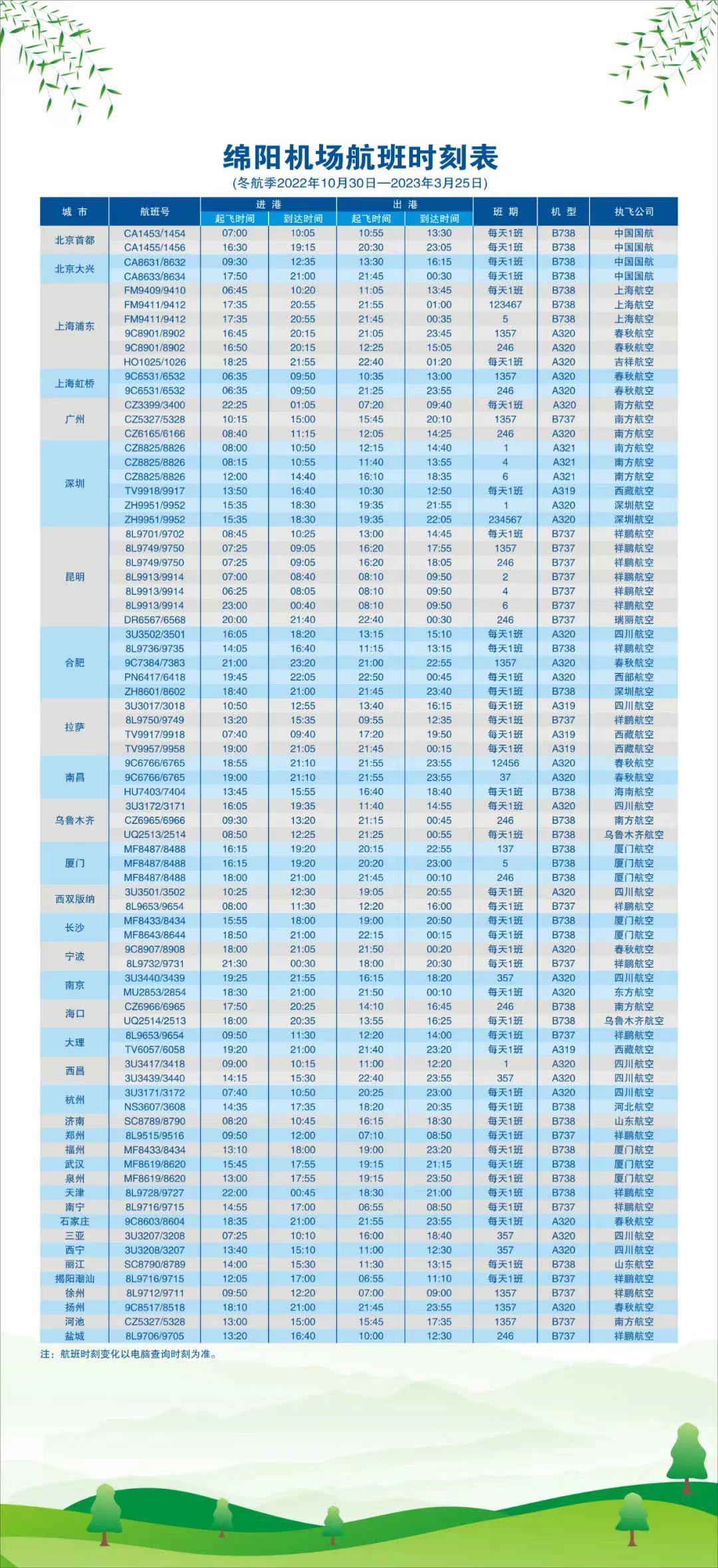 綿陽機(jī)場航班