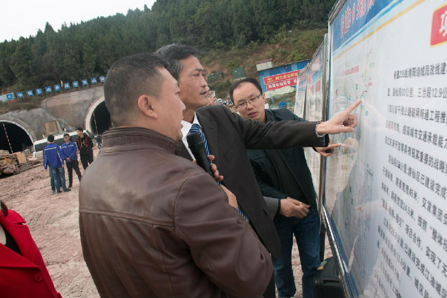 2018年11月7日下午,集團(tuán)公司領(lǐng)導(dǎo)班子成員調(diào)研金家林新增大型戶外宣傳牌、省道205老龍山隧道工程、繞城高速永明互通立交主線工程等重點(diǎn)項(xiàng)目。