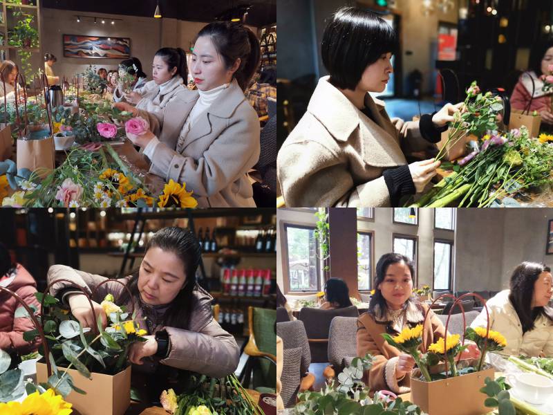 活動邀請了專業(yè)花藝師現(xiàn)場授課,花藝老師從鮮花特性、色彩、作用等方面進行了生動講解,介紹了十余種鮮花的習(xí)性和用法,演示制作了桌擺花藍,讓大家享受了一堂生動的插花課程。大家在溫馨愉悅的氛圍中,憑借每個人對美的不同理解,把原本普通的花草,經(jīng)過修剪、層次搭配、點綴等步驟,變成了色彩斑斕、獨具匠心的花藝作品,感受從自己手中綻放的浪漫?!?/p>