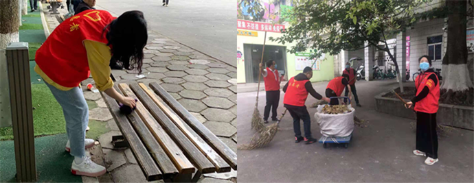 實(shí)業(yè)公司全體黨員、入黨積極份子、團(tuán)員、職工志愿者清掃社區(qū)落葉、生活垃圾,擦拭社區(qū)健身活動(dòng)器材和公共座椅。