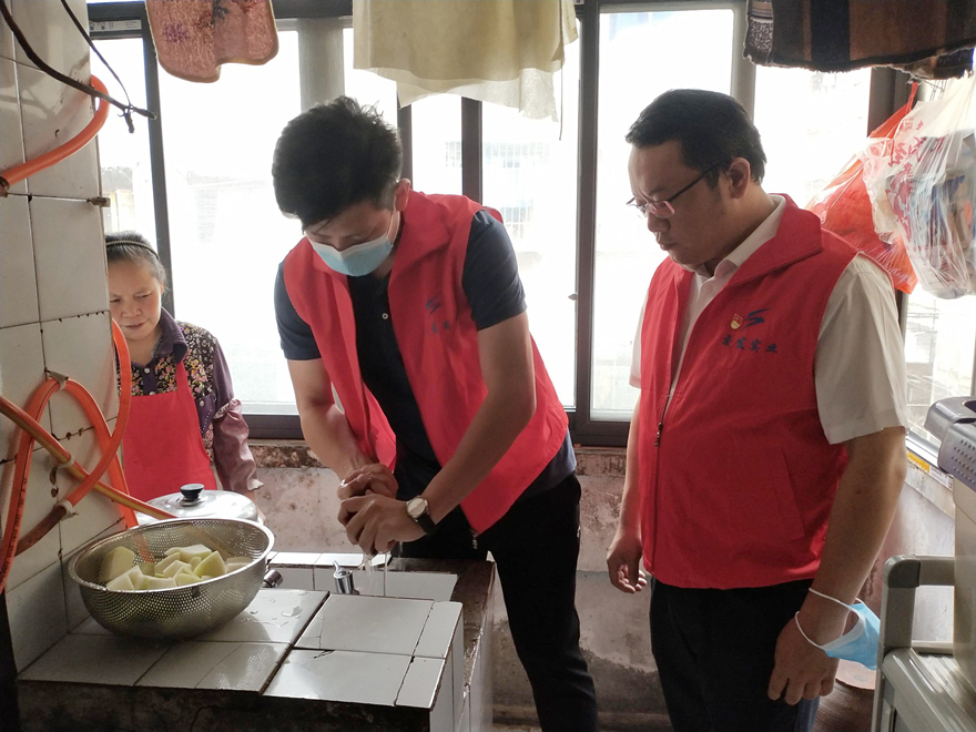 黨員代表和團(tuán)員代表入戶為身患?xì)埣残袆?dòng)不便的老人打掃衛(wèi)生,清潔地面,擦拭窗戶和家具用品,傾倒垃圾,得到了社區(qū)住戶的一致好評(píng)。