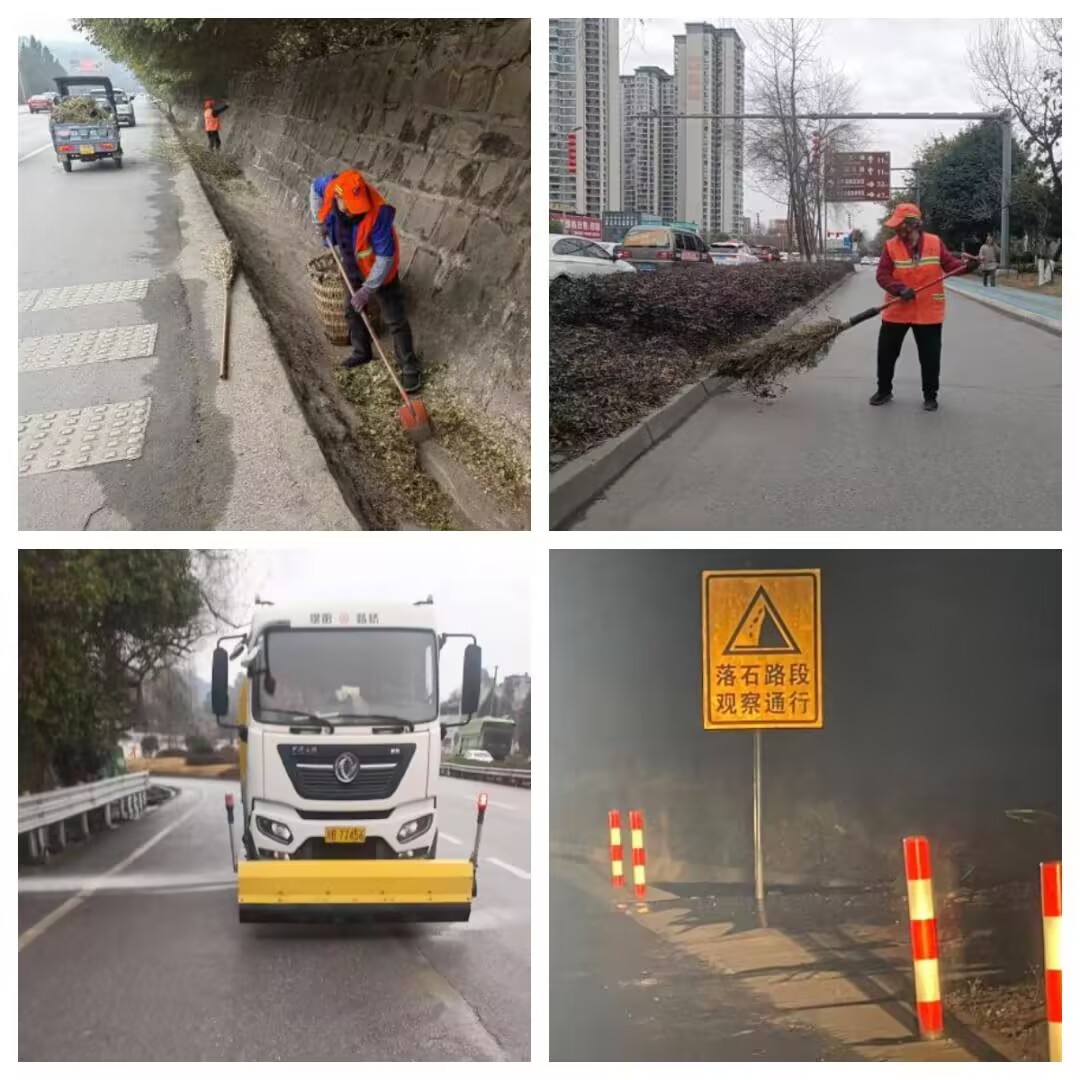 春節(jié)期間,路橋公司派出160余名一線養(yǎng)護工人、20余名機械作業(yè)人員,對管養(yǎng)354公里道路進行日常清掃保潔工作;安排專人對各線路橋梁、涵洞、隧道、路基、路面、高邊坡和交安設施等部位進行安全隱患排查,及時處置公路安全隱患;設置6名觀察哨,對51處地災易發(fā)點進行值守;加密夜間巡查頻次,筑牢交通安全防線,提升道路安全水平,為廣大人民群眾的平安出行保駕護航。
