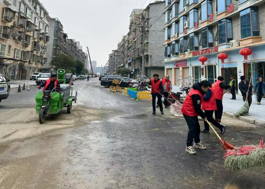在社區(qū)塌方路段搶修現(xiàn)場,志愿者服務(wù)隊迅速響應(yīng),科學(xué)劃分作業(yè)區(qū)域,采用人機協(xié)同方式展開搶險作業(yè)。工程機械對大型塌方體進行破碎處理后,志愿者們接力完成碎石清運、路面平整等工作,經(jīng)過2小時連續(xù)奮戰(zhàn),成功打通受阻道路,及時消除交通安全隱患。與此同時,另一組志愿者攜專業(yè)設(shè)備對社區(qū)主干道實施“深度美顏”,調(diào)配高壓灑水車進行立體化沖洗,配合人工精細化清掃,重點整治隱蔽垃圾、路緣石積塵等衛(wèi)生死角,使近800米道路煥發(fā)新顏、潔凈如新。