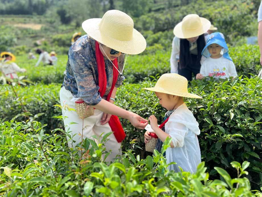 歡聲笑語此起彼伏,漫山遍野洋溢著濃濃的親子氛圍。在采茶師傅的悉心指導(dǎo)下,孩子和家長們挎上茶簍,指尖輕觸嫩芽,共同完成采摘、攤晾、揉捻等工序,將翠綠茶青炒制成清香四溢的茶葉。此次活動不僅讓職工家庭體驗(yàn)到傳統(tǒng)制茶技藝,更在協(xié)同勞作中深化了親子默契。孩子們穿梭茶壟間結(jié)識伙伴,手捧親手炒制的茶葉時,眼中閃耀著勞動收獲的喜悅,為童年記憶增添了一抹青翠底色。