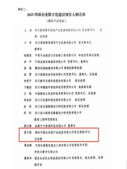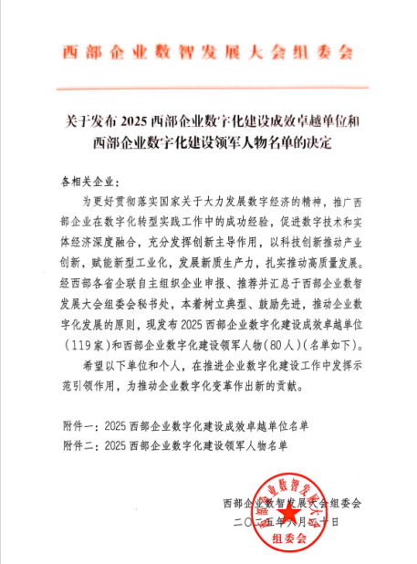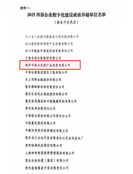 喜報(bào) | 高農(nóng)司被評(píng)為“2025西部企業(yè)數(shù)字化建設(shè)成效卓越單位”